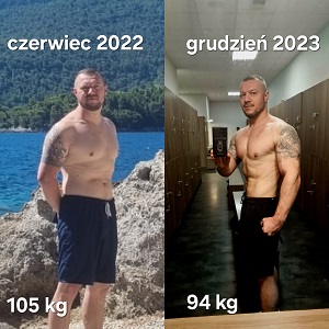 Moja współpraca z Kubą trwa już cztery lata i jest to niezwykle dobrze zainwestwoany czas. Dzięki jego wsparciu i profesjonalizmowi udało mi się osiągnąć wymarzoną sylwetkę, o której wcześniej tylko marzyłem. Kuba dostosował program treningowy do moich indywidualnych potrzeb, co pozwoliło mi na systematyczny rozwój i poprawę wyników. Oprócz fizycznych zmian, podczas tych lat nawiązałem również przyjaźń z Kubą. Jego pozytywne podejście i motywacja sprawiły, że treningi stały się nie tylko obowiązkiem, ale także przyjemnością.
